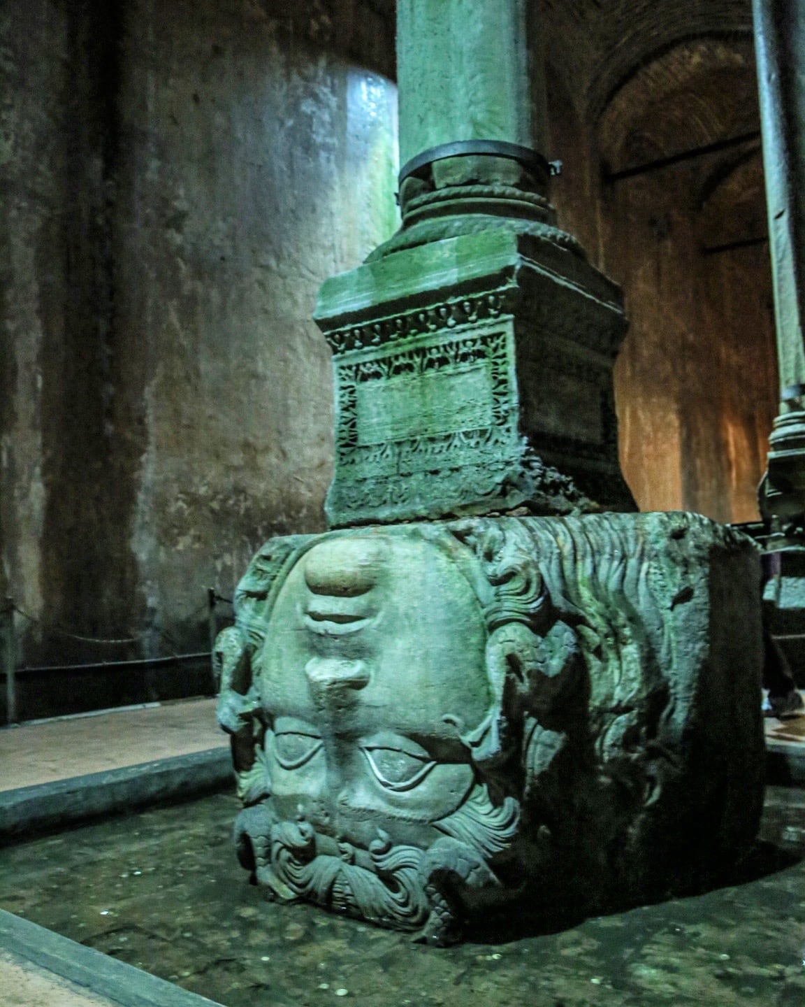 At the far northwest corner of the cistern lie its most famous residents—two Medusa heads used as bases for columns. For unknown reasons, one is placed sideways, while the other is upside down. Were they positioned this way for symbolic protection? Or simply to fit the column bases? Perhaps, we’ll never know!